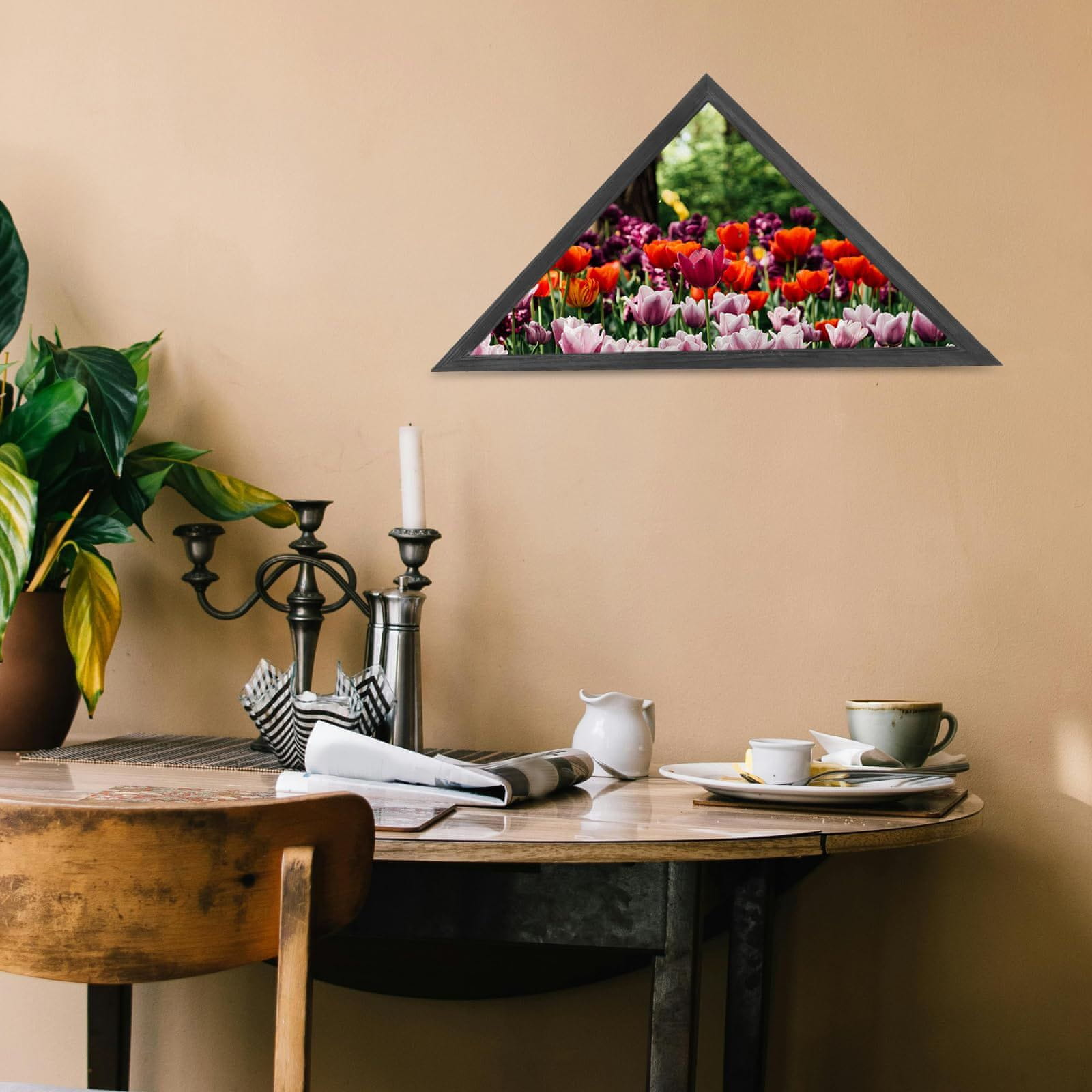 Iskoristite priliku da obogatite svoj prostor jedinstvenim dekorativnim elementom. Naručite ovaj trokutasti drveni okvir danas i unesite dašak modernog stila u svoj dom ili ured.