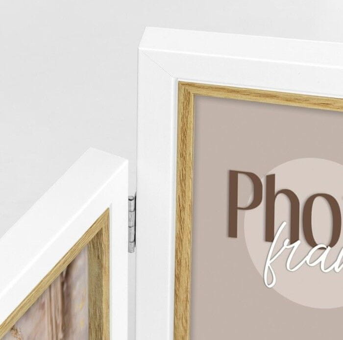 Okvir elegantne bijele boje u koji možete pohraniti dvije fotografije, jednu u portretnom formatu, a drugu u horizontalnom formatu. Savršeno će uljepšati vaš dom ili ured. Pogodan je za stavljanje na stol ili na zid. Dimenzije jednog okvira su 13 × 18 cm.