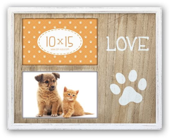Foto okvir Barret s dimenzijama 29×24 cm koji nudi prostor za 2 fotografije. Unutar okvira ukrašava natpis Love i otisak pseće šapice.