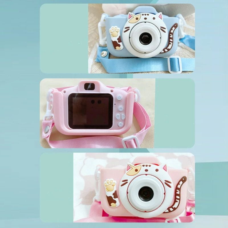 Dječji digitalni fotoaparat koji je jednostavan za fotografiranje. Fotografija s jednim gumbom, nije potrebno izoštravanje. Kućište je sigurno i izdržljivo i koristi ekološki prihvatljive materijale poput visokokvalitetne meke plastike. Tu je i kabel s kojim se aparat neće izgubiti.