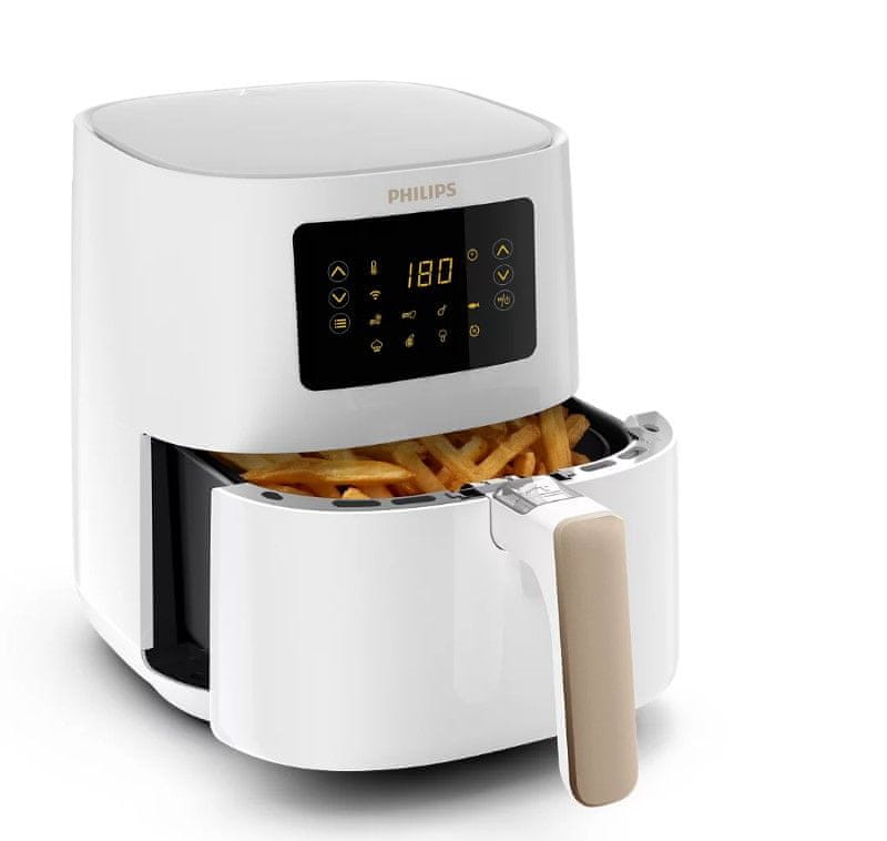 Opremljena je zaslonom osjetljivim na dodir na kojem možete birati između sedam automatskih programa – zamrznute grickalice, svježi krumpirići, piletina, riba, meso, povrće na žaru i muffini.
