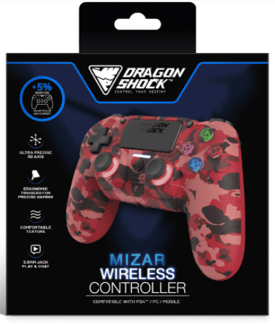 DragonShock Mizar gamepad, bežični, PS4, PC, crvena