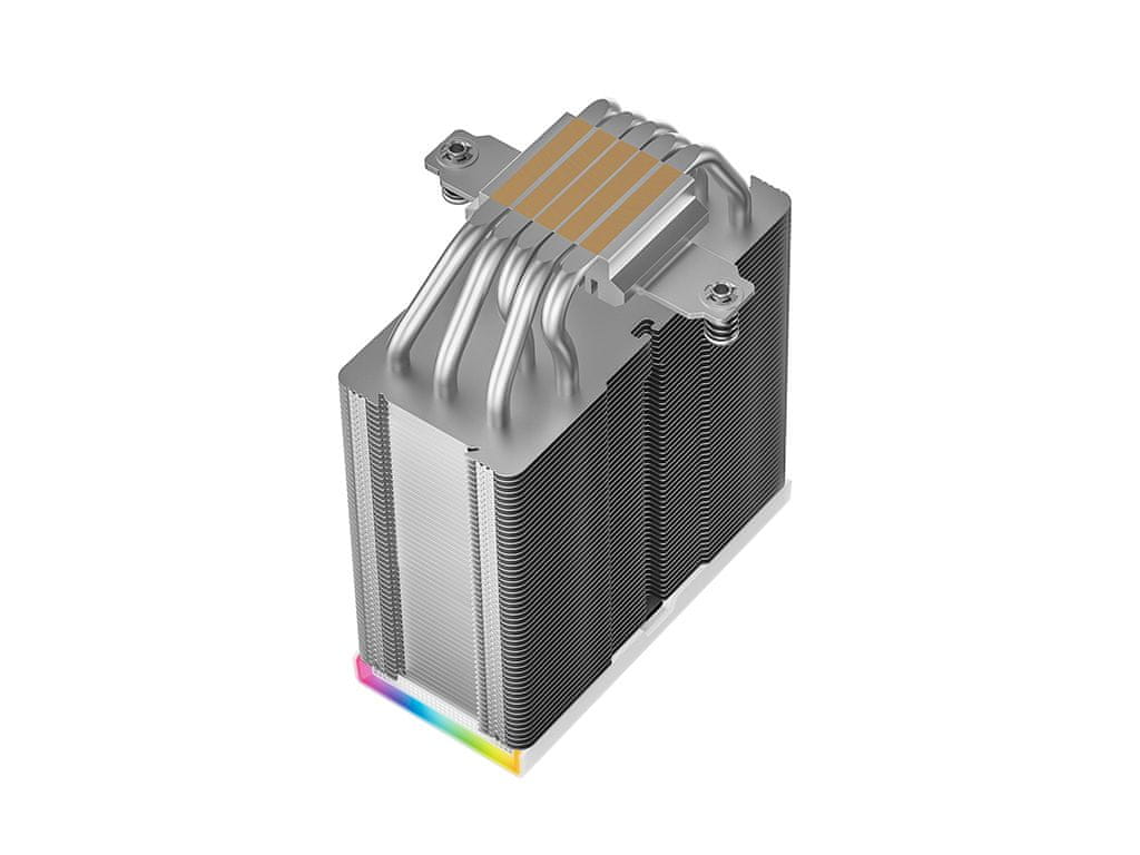 DeepCool AK500S DIGITAL SE WH u elegantnoj bijeloj boji predstavlja sljedeću razinu zračnog hlađenja za vaš procesor. Njegova najznačajnija značajka je ugrađeni LCD zaslon koji prikazuje temperaturu i opterećenje sustava u stvarnom vremenu, a istovremeno vas upozorava na kritične vrijednosti. Pet visokoučinkovitih bakrenih toplinskih cijevi u kombinaciji sa 120 mm PWM ventilatorom s hidrodinamičkim ležajevima osiguravaju brzo odvođenje topline čak i tijekom zahtjevnih zadataka. Tanki dizajn tornja s „kosim“ dizajnom omogućuje savršenu kompatibilnost s visokim RAM modulima, dok ARGB osvjetljenje osigurava da se hladnjak vizualno uklapa u vašu igraću konfiguraciju.