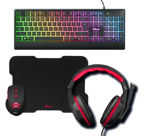 Trust Ziva gaming set, 4 u 1, tipkovnica, miš, podloga, slušalice, crna (24233)
