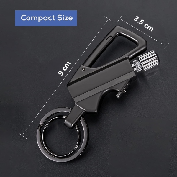 Spaja tri osnovne funkcije u jednom alatu: trajnu šibicu, otvarač za boce i karabiner privjesak za ključeve, sve u izdržljivom i kompaktnom kućištu.