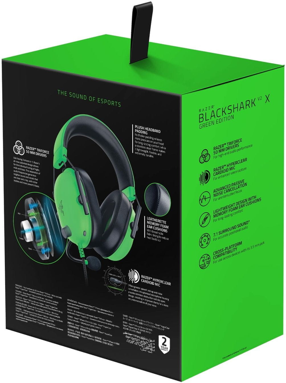 Za potpuno dubinsko iskustvo igranja potrebna vam je ne samo sjajna slika, već i prvoklasni zvuk – Razer Blackshark V2 X gaming slušalice. Savršena jasnoća zvuka osigurana je zahvaljujući 50 mm driverima s podrškom za vanjsku zvučnu izolaciju i podršku za gaming slušalice za THX Spatial Audio 7.1 virtualni surround zvuk. Apsolutna povlastica je mogućnost individualnog izjednačavanja tri frekvencijska pojasa: niske, srednje i visoke. To vam omogućuje ugađanje zvuka po svom ukusu.