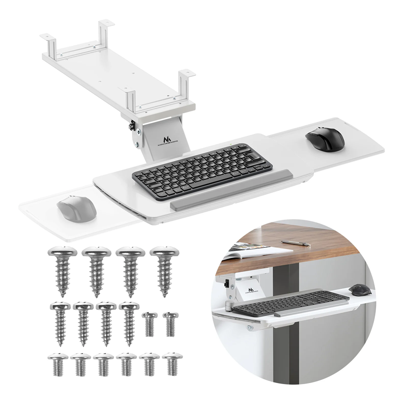 Držač za tipkovnicu Maclean MC-156 praktično je i ergonomsko rješenje za one koji cijene red i udobnost u svom radnom prostoru. Držač, postavljen ispod stola, omogućuje učinkovito korištenje radnog prostora, a istovremeno osigurava udoban položaj za tipkanje.