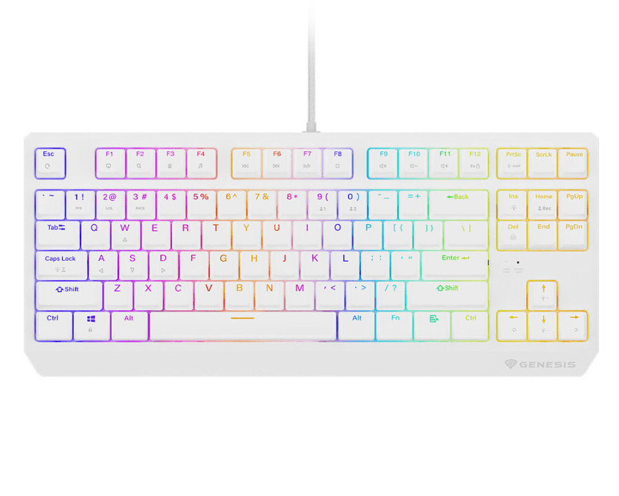 Genesis THOR 230 TKL je mehanička gaming tipkovnica koja će vas impresionirati na svaki način! Njen atraktivan bijeli izgled daje joj jedinstvenost, a tipkovnica se također ističe iznimnim funkcijama i prednostima nad konkurencijom. Prepustite se jedinstvenoj kombinaciji boja s RGB LED osvjetljenjem! Tipkovnica se ističe izvrsnim funkcijama: