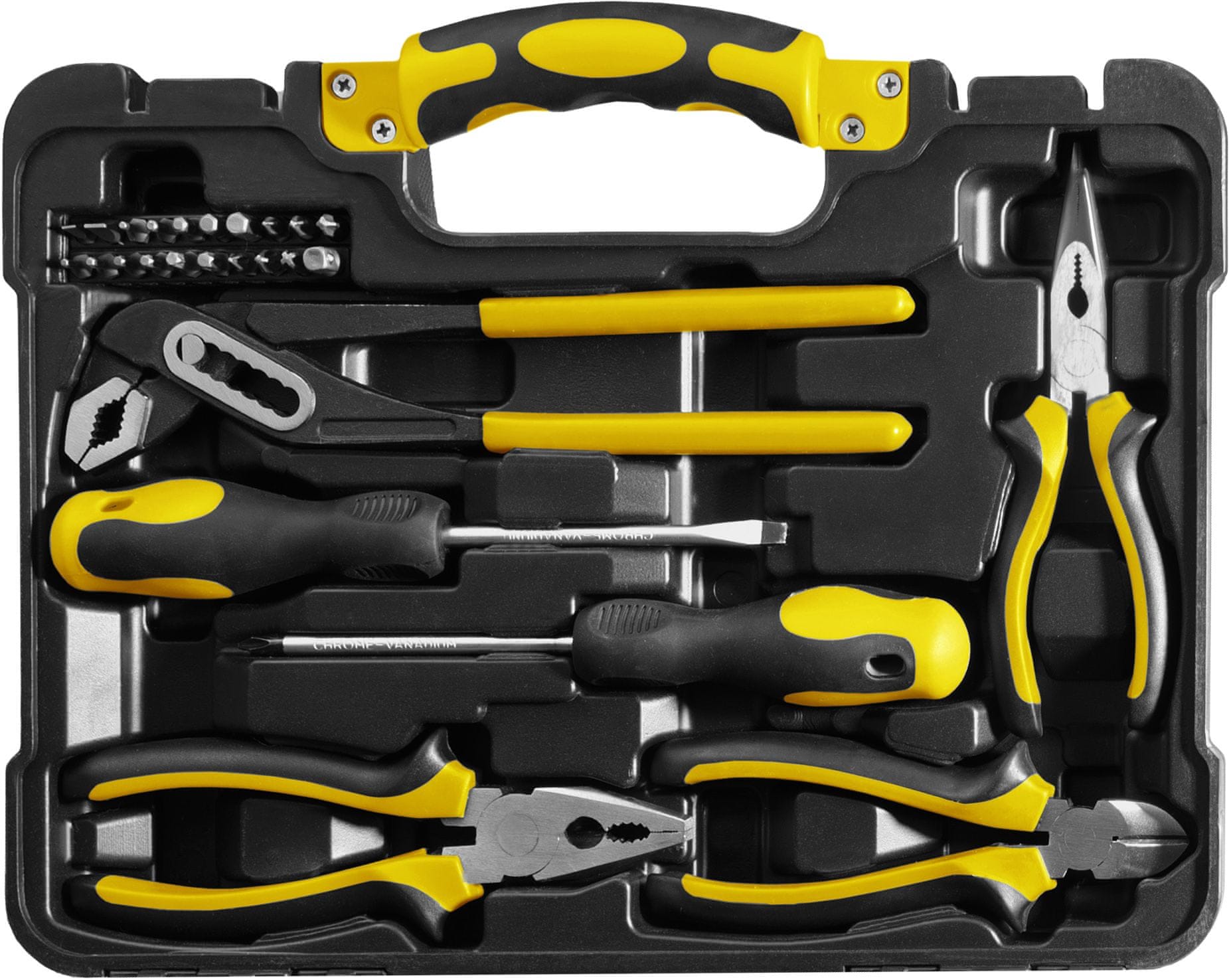Komplet dobijete u plastičnom kovčegu. Ručka kovčega je ergonomski dizajnirana.