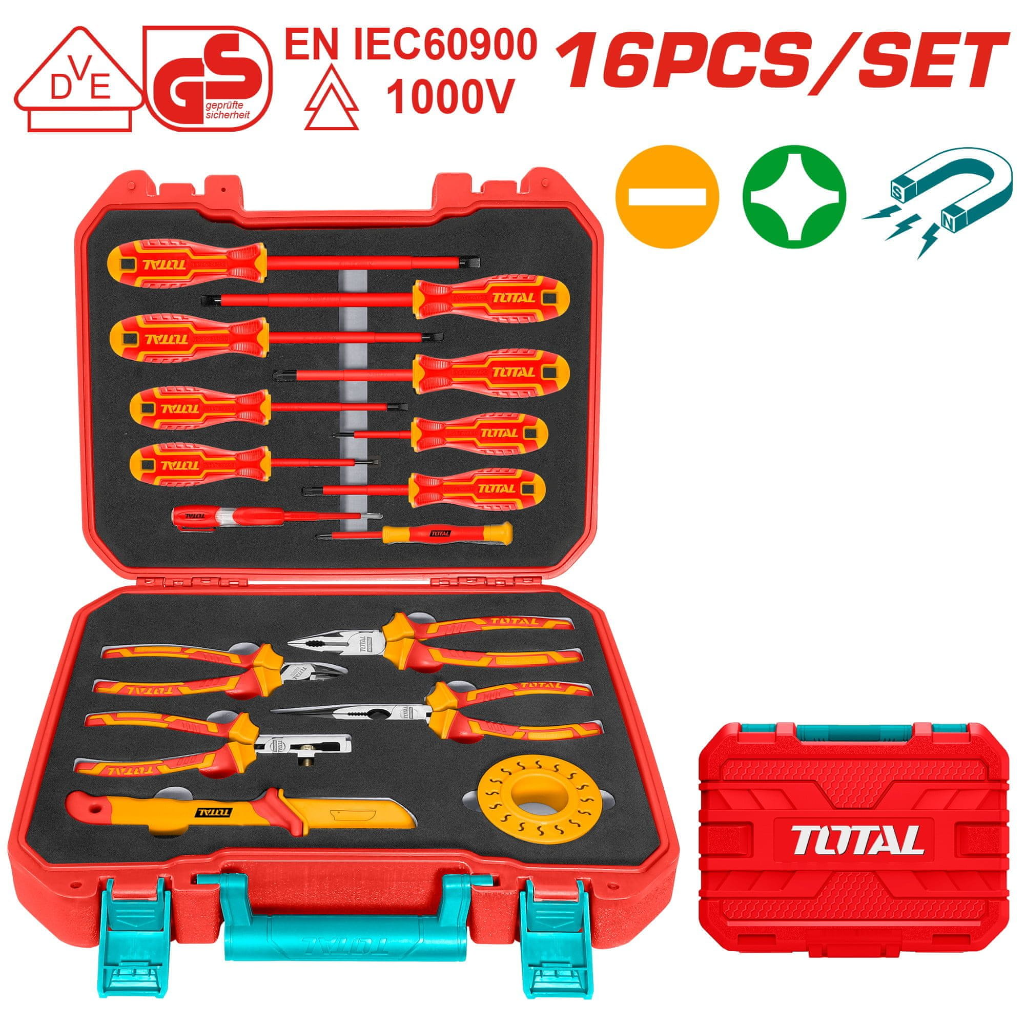 Total One-Stop Tools 16-dijelni set izoliranih ručnih alata / INDUSTRIAL (THKITH1601)