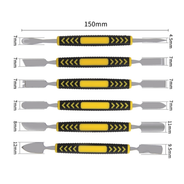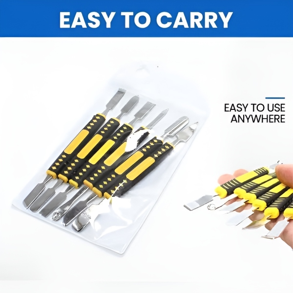 Set preciznih dvostranih alata za sigurno otvaranje uređaja bez ogrebotina. Idealan za telefone, tablete, prijenosna računala, satove i konzole. Lagani, kompaktni i izrađeni od nehrđajućeg čelika—6 komada s ukupno 12 oštrica za sve fine zadatke.