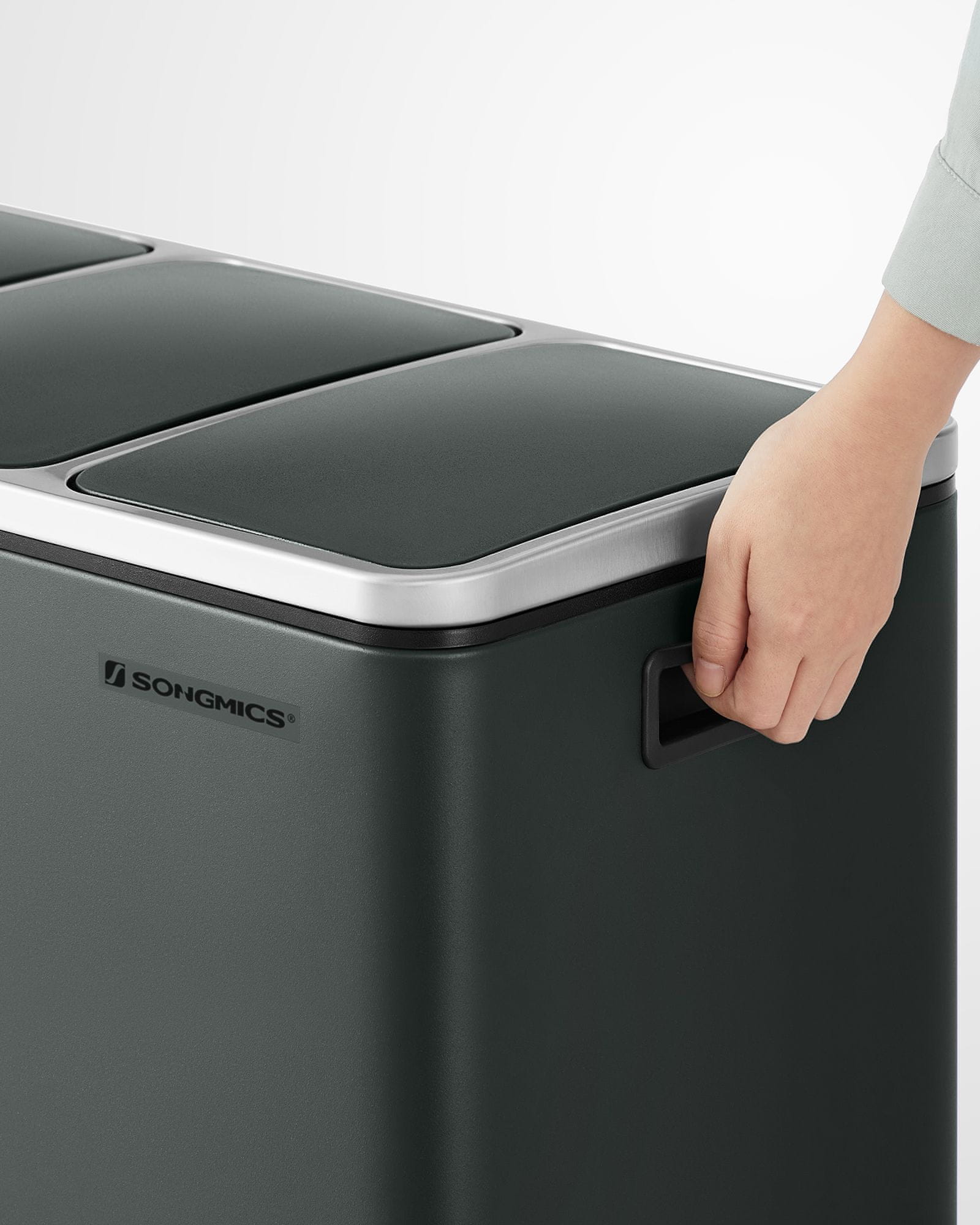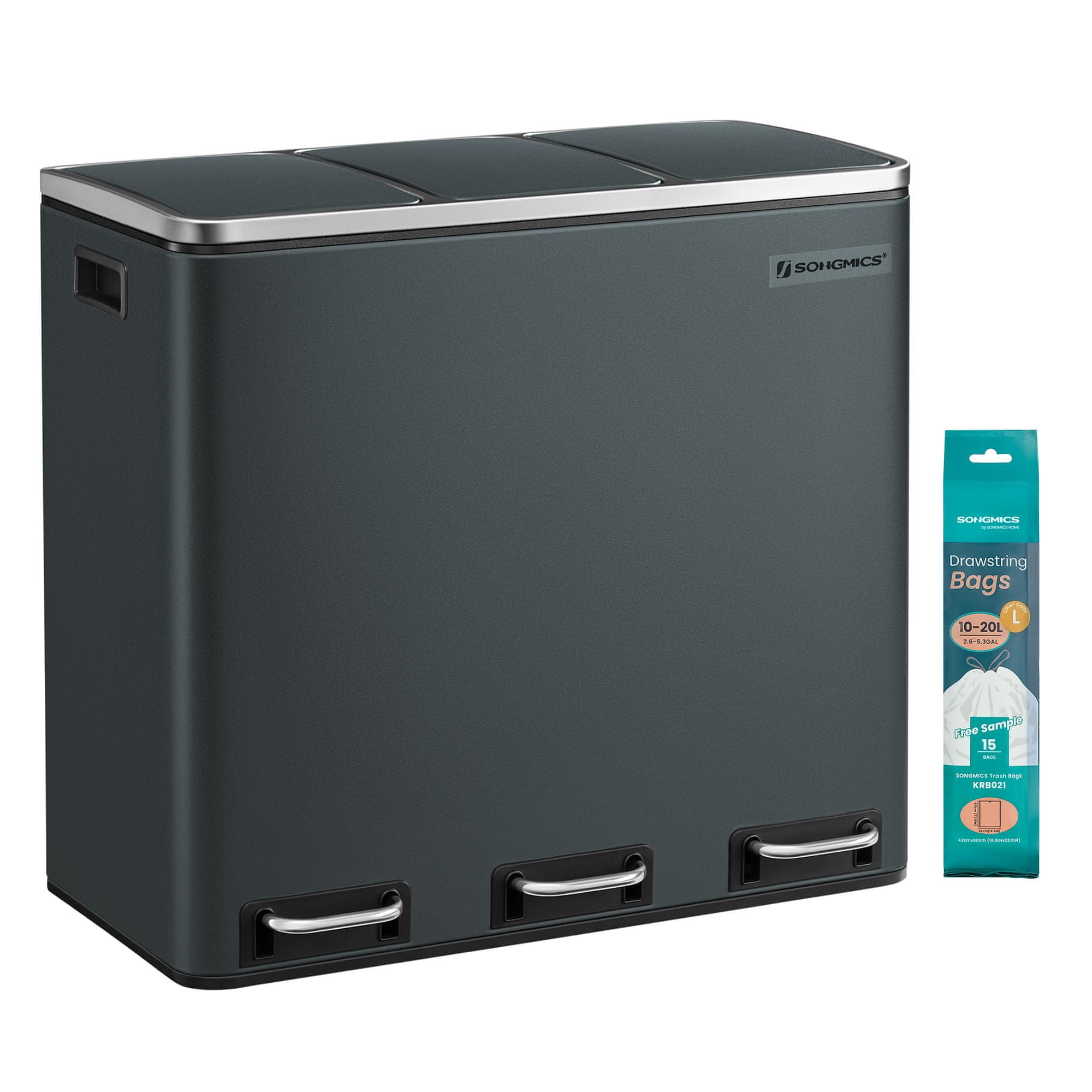 Songmics Kanta za reciklažu 3 pregrade 61x31.5x55.5 cm Zelena Siva