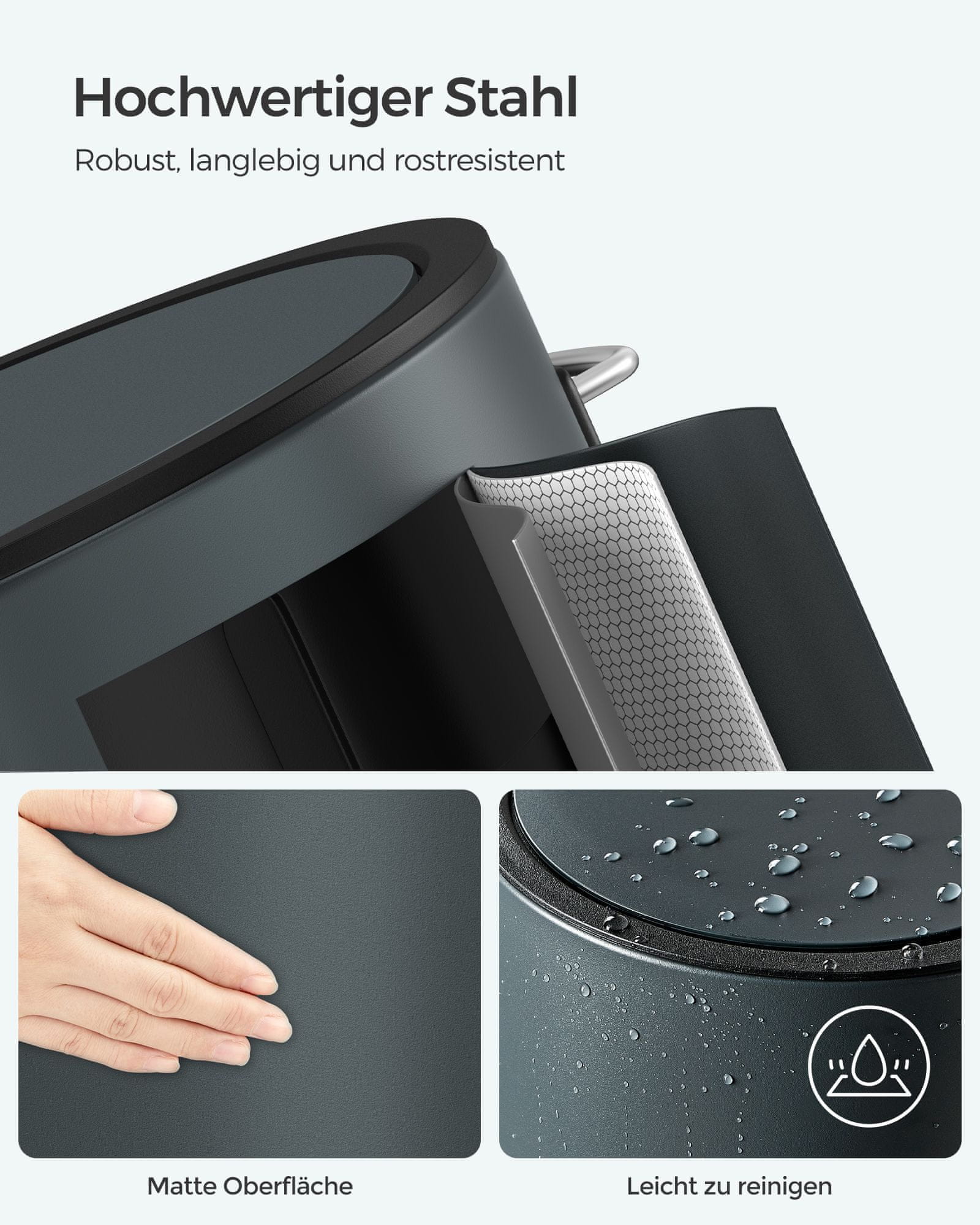 - Materijal: vanjska posuda od čelika poklopac od ABS plastike unutarnja kanta od PP plastike