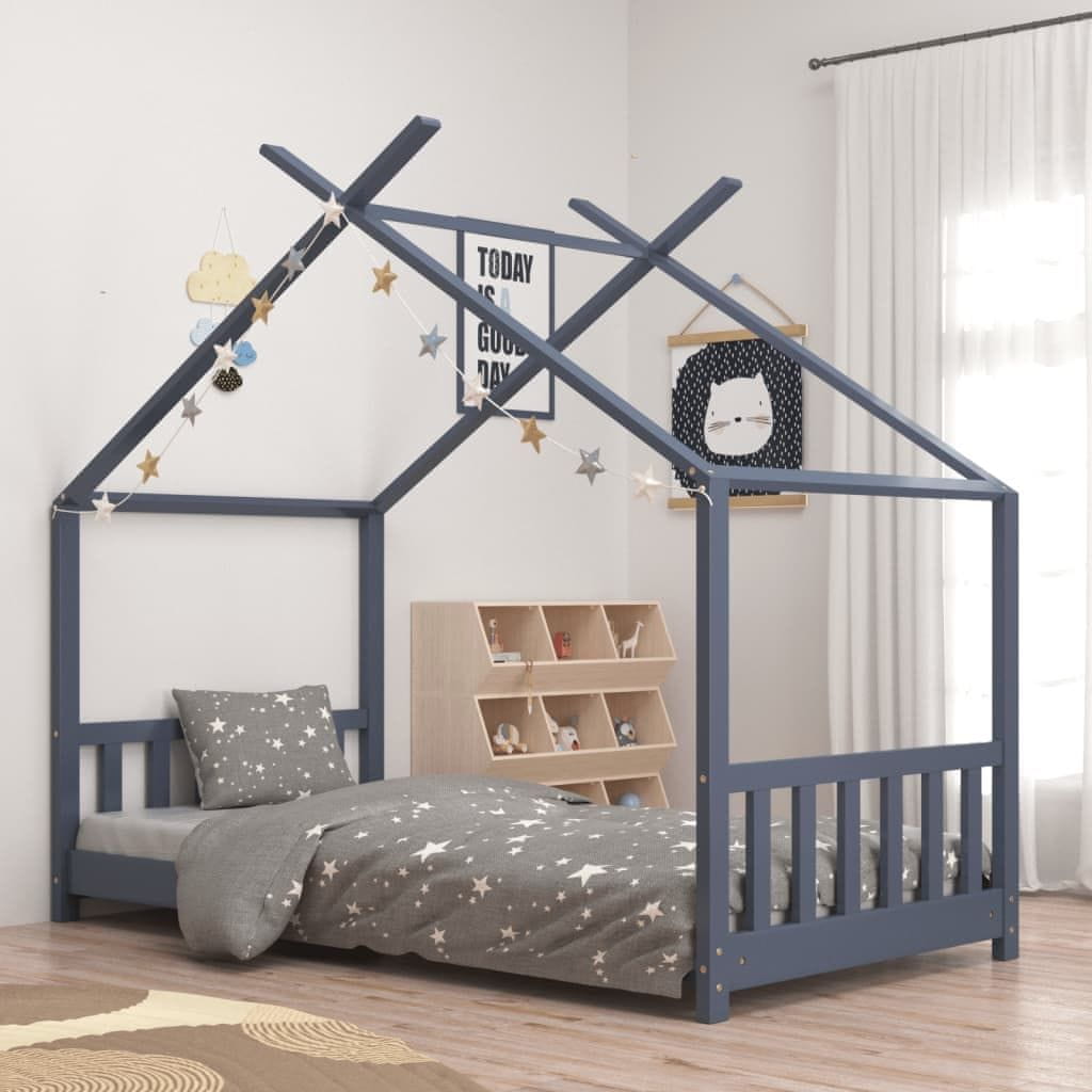Vidaxl Okvir za dječji krevet od masivne borovine sivi 70 x 140 cm