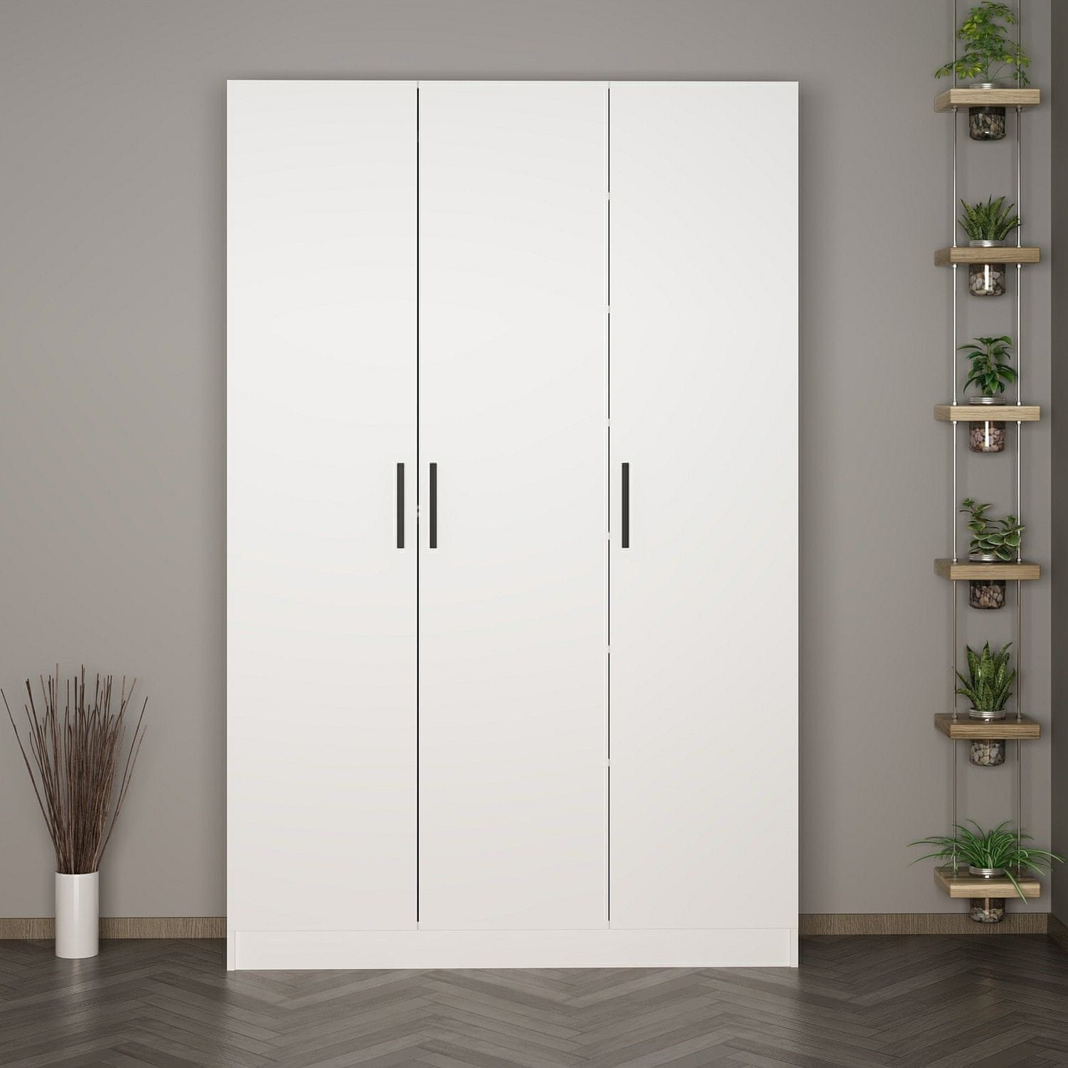 100% debljina čestica obloženih melaminom: 18 mm Širina: 135 cm Visina: 210 cm dubina: 35 cm, Broj paketa: 3 53 × 211 × 6,5 cm – 30,15 kg (1 komad) 47 × 217 × 8 cm – 33 kg (1 komad) 44 × 144 × 11 cm – 30,7 kg (1 komad)