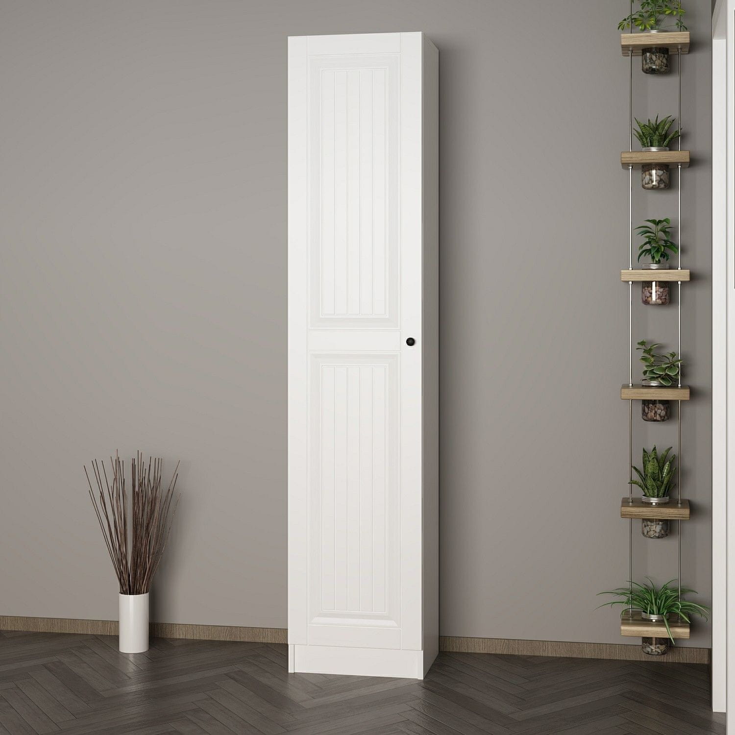 100% debljina čestica obloženih melaminom: 18 mm Širina: 45 cm Visina: 210 cm dubina: 35 cm, Broj paketa: 2 46 × 218 × 10 cm – 35,25 kg (1 komad) 53 × 211 × 2,5 cm – 11 kg (1 komad)