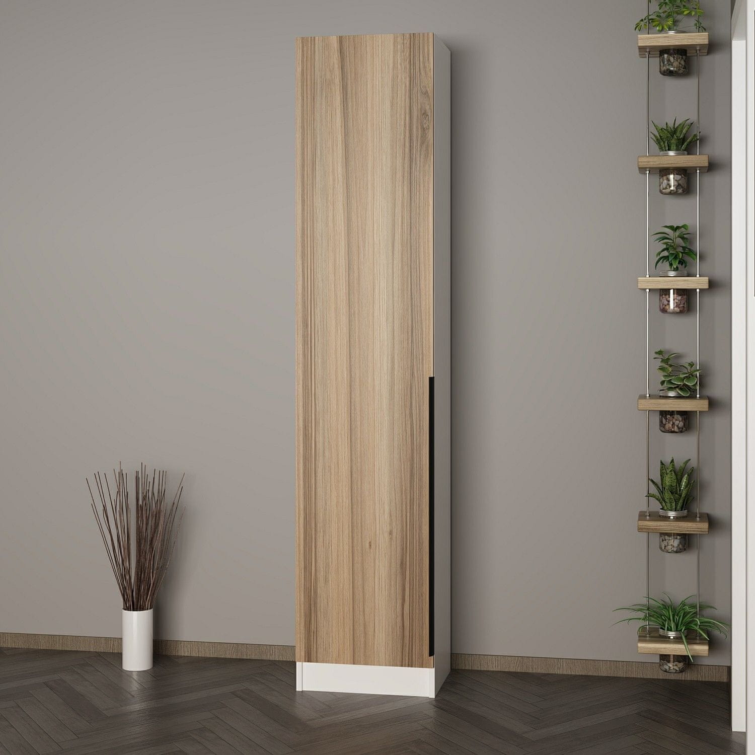 100% debljina čestica obloženih melaminom: 18 mm Širina: 45 cm Visina: 210 cm dubina: 35 cm, Broj paketa: 2 46 × 218 × 10 cm – 35,25 kg (1 komad) 53 × 211 × 2,5 cm – 11 kg (1 komad)