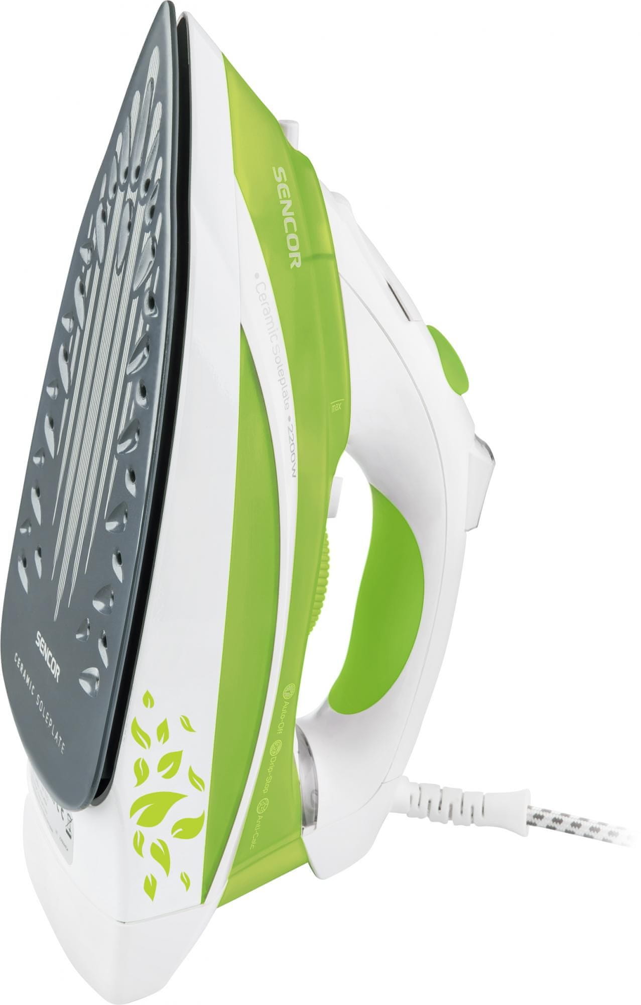 Sencor SSI 8440GR glačalo na paru snage 2200 W s keramičkom površinom za glačanje. Odlikuje ga sustav automatskog odstranjivanja vodenog kamenca, sustav protiv kapanja za sprečavanje nastajanja mrlja na tkanini, stalan nadzor temperature i ispusta pare, gumb za raspršivanje, termostat i funkcija okomitog izlaza pare.