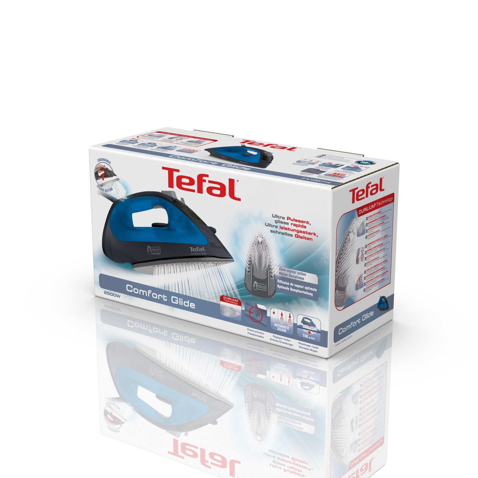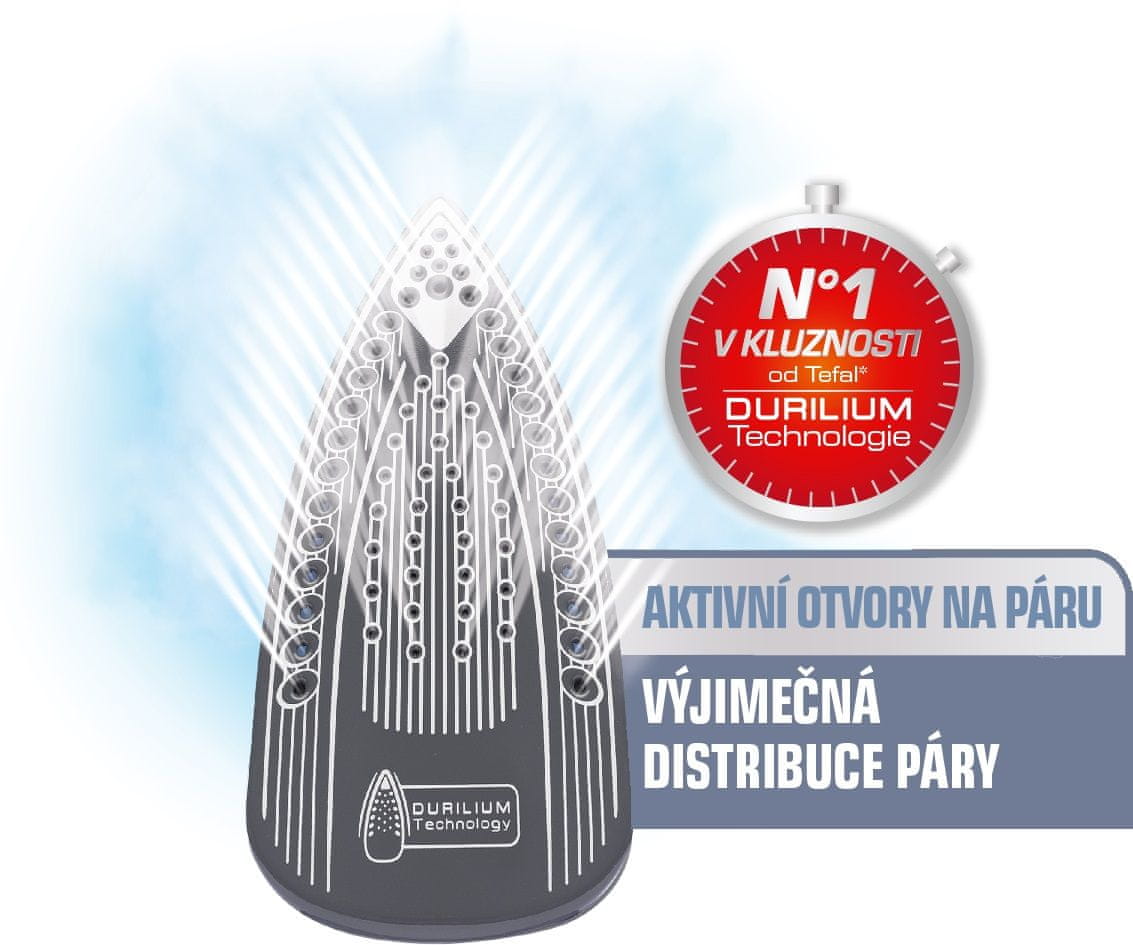 Tefal glačala su hvaljena više od 30 godina svojim površinama za glačanje, koje se odlikuju izvrsnim klizanjem i otpornošću. U usporedbi s drugima, glačalo je opremljeno s aktivnim otvorima i na sredini površine za glačanje.