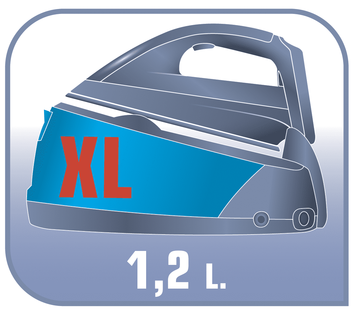 Spremnik za vodu volumens 1,2 litre s XL filtrom omogućuje duže vrijeme glačanja.