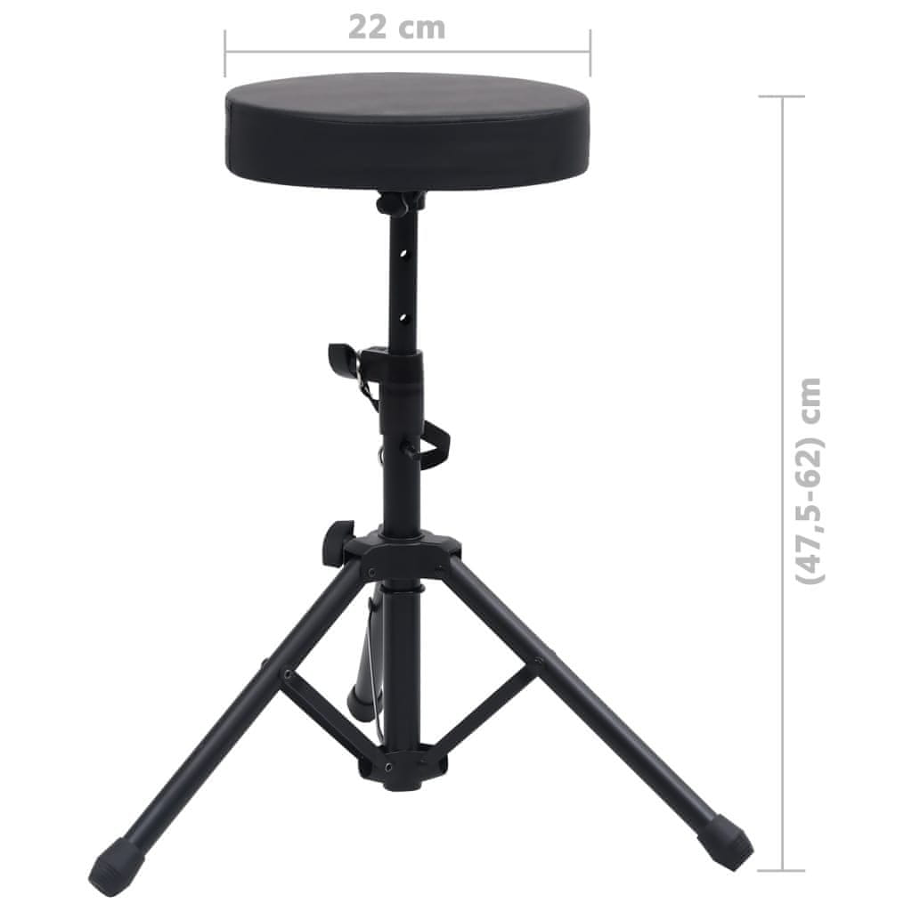 Vidaxl Podesivi stolac za bubnjeve crni okrugli
