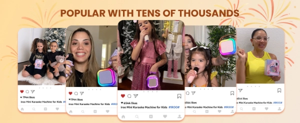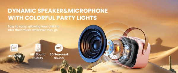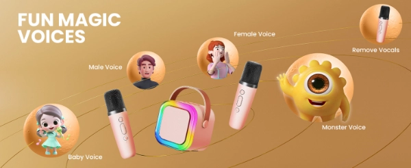 - Kristalno čist zvuk i beskrajna zabava: Kao pionir u dječjim karaoke aparatima, s naprednim audio drajverima i digitalnom obradom signala za pametno smanjenje buke – bez zavijanja! Sa znanstveno kontroliranom glasnoćom za zaštitu malih ušiju. Osim toga, 5 zabavnih glasovnih efekata dodaje dodatno uzbuđenje vježbanju pjevanja, djeca mogu pjevati satima bez umora! Pretvorite svoju dnevnu sobu u koncertnu dvoranu, a dvorište u pozornicu! Neka predstava počne!