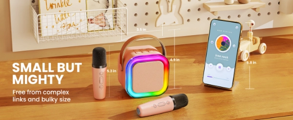 - Slatko i kompaktno: Dizajn prilagođen korisniku osigurava jednostavno rukovanje, a materijali sigurni za djecu i izdržljivi savršeni su za djevojčice i dječake u dobi od 3 do 12 godina. Ovaj prijenosni karaoke uređaj jednostavan je za nošenje i služi kao Bluetooth zvučnik za obiteljske plesne zabave, priče za laku noć ili mamine treninge – zabava za svaku prigodu