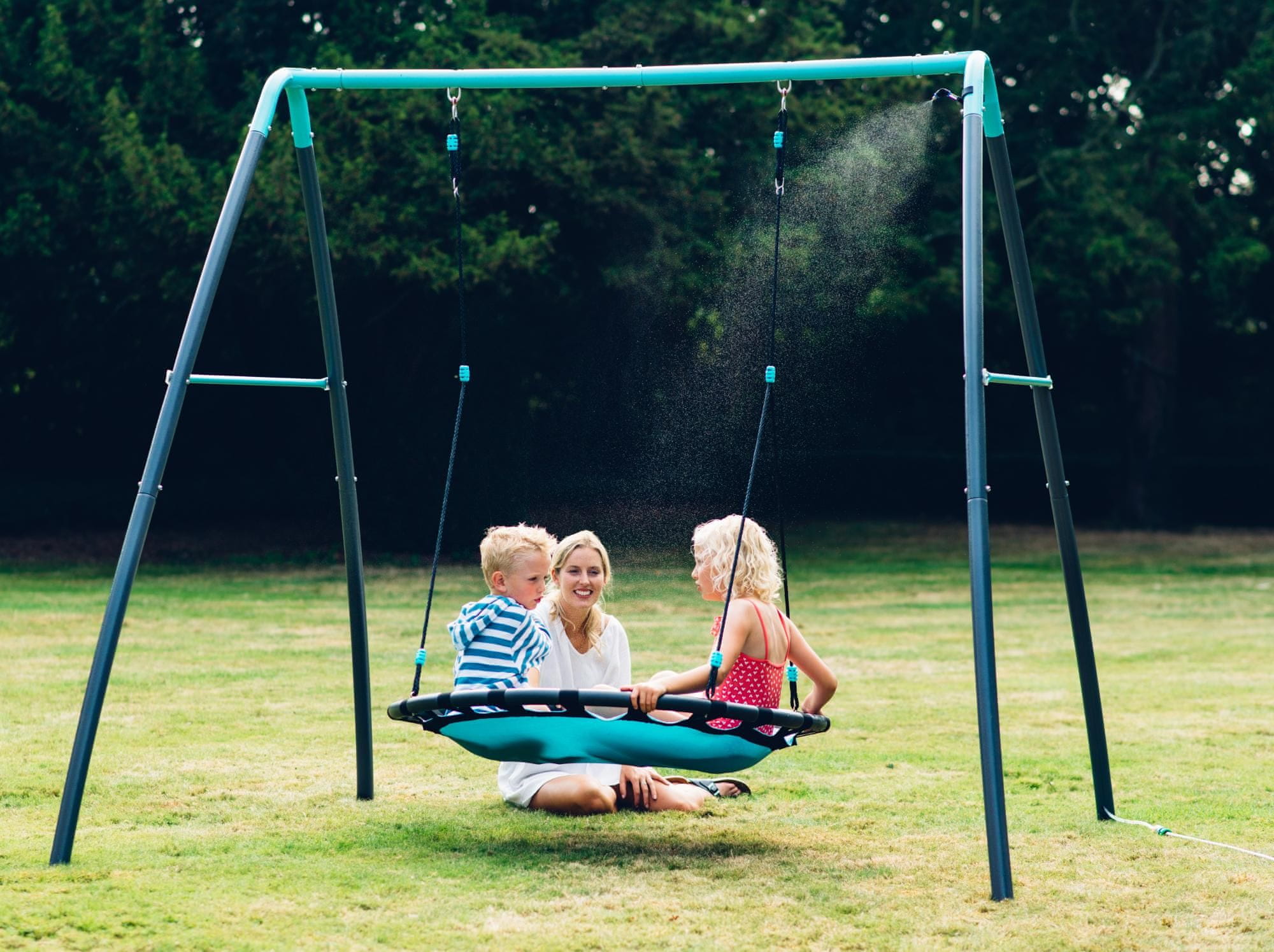 Dječju ljuljačku Plum® spojite na metalnu konstrukciju, a mlaznicu za maglu na vrtno crijevo i uživajte u osvježavajućoj zabavi u vrućim ljetnim danima. Izuzetno visok čelični okvir dimenzija 2,18 m osigurava visoku stabilnost i izrađen je od pocinčanog čelika, pocinčanog iznutra i izvana, što pruža trajnu zaštitu od hrđe.