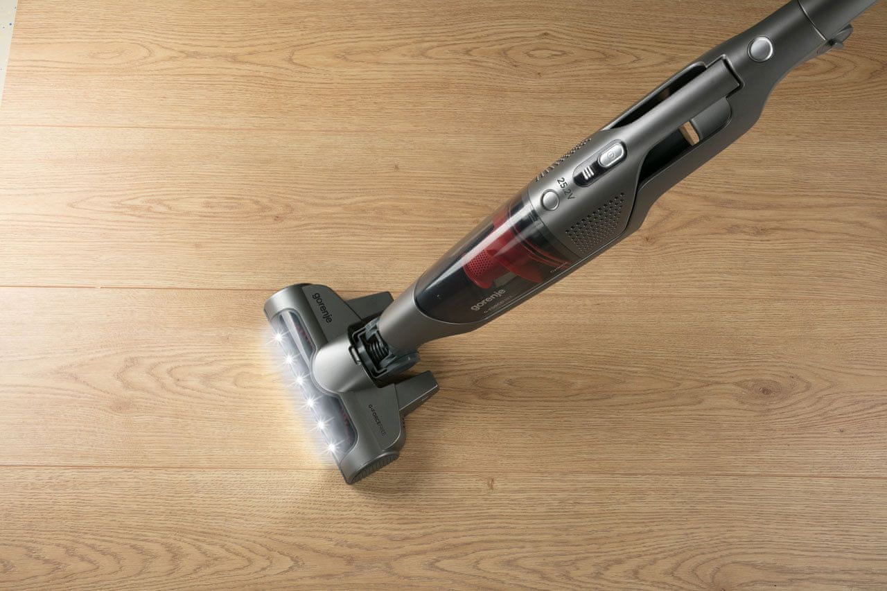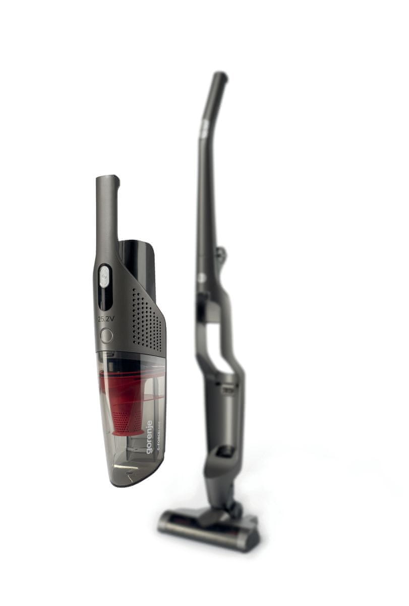 Gorenje SVC252GFA je uspravni bežični usisavač s trajanjem do 70 minuta. Radi sa spremnikom prašine. Ima 2 nastavka i 4 gumena kotača za lako kretanje. Upravljanje je lako putem gumba na ručki.