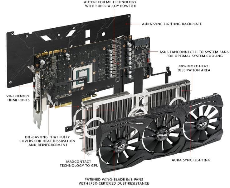 Grafička kartica Asus GeForce GTX 1080 Ti OC Strix može se pohvaliti nevjerojatnom snagom i performansama. Sadrži nevjerojatnih 11 GB VRAM GDDR5X koji radi brzinom do 11 Gbps. Arhitektura Pascal donosi do 3 puta više energije od prethodne generacije grafičkih kartica, više tranzistora, manju potrošnju energije i usklađenost s VR sustava. Uključujući premium jednogodišnje licence za GPU Tweak II i XSplit Gamecaster. Cijeli opis