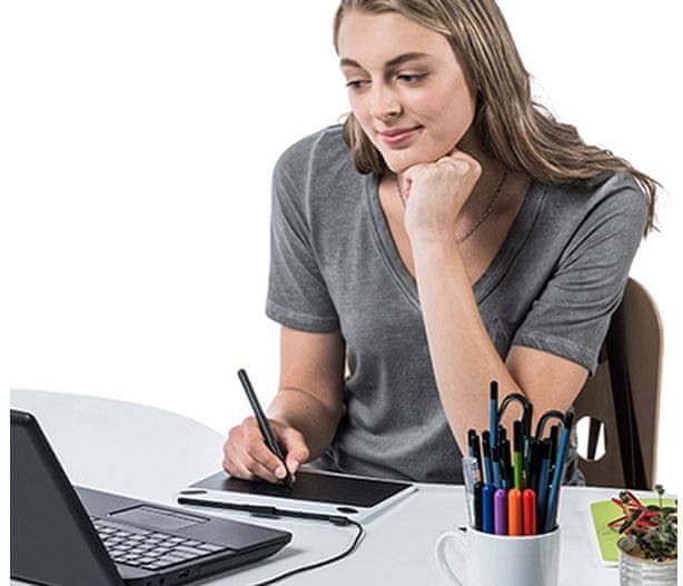 Na dodir osjetljiva olovka je primjerena za dešnjake i ljevake, ExpressKeys tipke predstavljaju pouzdane prečace do važnih funkcija. Cijenit ćete jednostavnu instalaciju, stoga će tablet odmah biti spreman za rad. Dodatna prednost tableta je njegova kompaktna dimenzija i mala masa, što ga čini lako prenosivim i također dopušta jednostavno korištenje u mali prostorima.