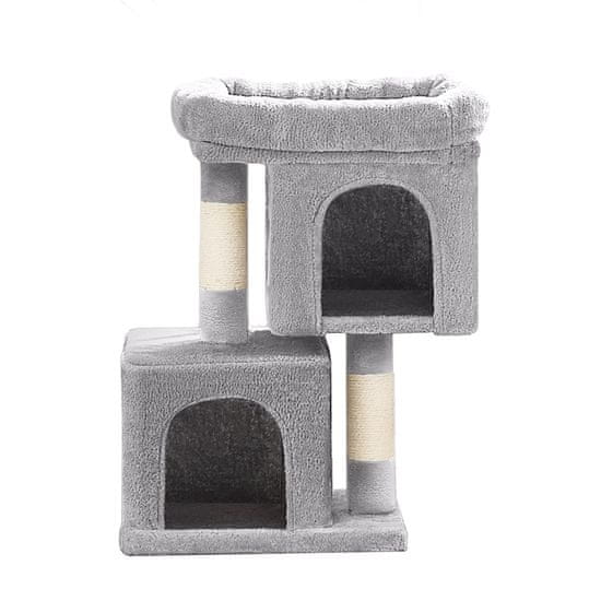 Ovo drvo za mačke dizajnirano je kako bi mačićima i malim mačkama pružilo udoban i zanimljiv prostor za penjanje grebanje i odmor. Sadrži prostranu platformu dvije udobne kućice i više stupova za grebanje nudeći sigurno i svestrano okruženje za kućne mačke. Njegova čvrsta konstrukcija i stabilna baza osiguravaju sigurnost i dugotrajnost što ga čini praktičnim dodatkom svakom domu.