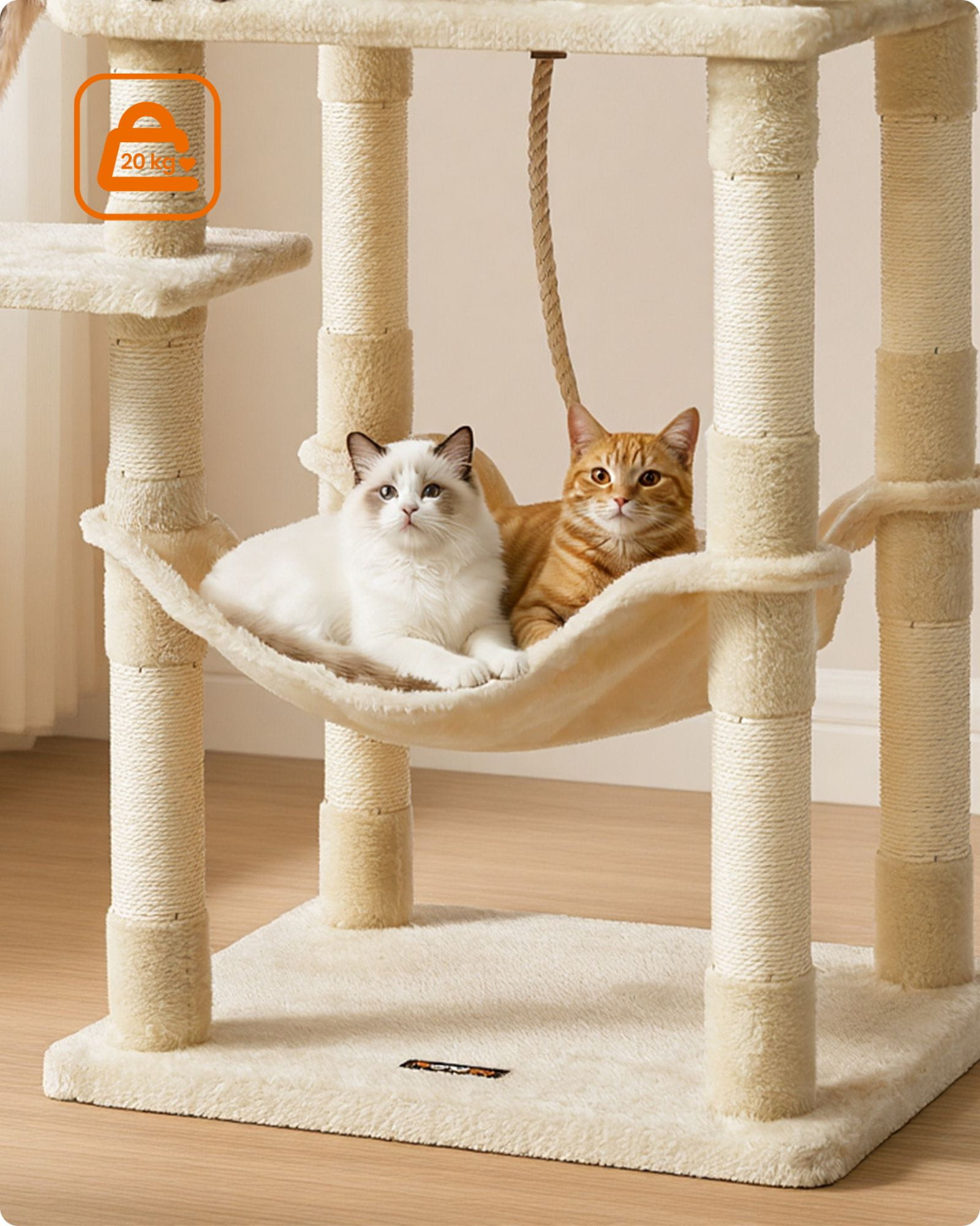 Ovo drvo za mačke pruža udoban prostor za vašu mačku za odmaranje, penjanje i promatranje okoline. Dizajnirano za stabilnost i udobnost, ima više razina i mekane platforme kako bi mačke bile zabavljene i opuštene. Idealno za mačiće i starije mačke.