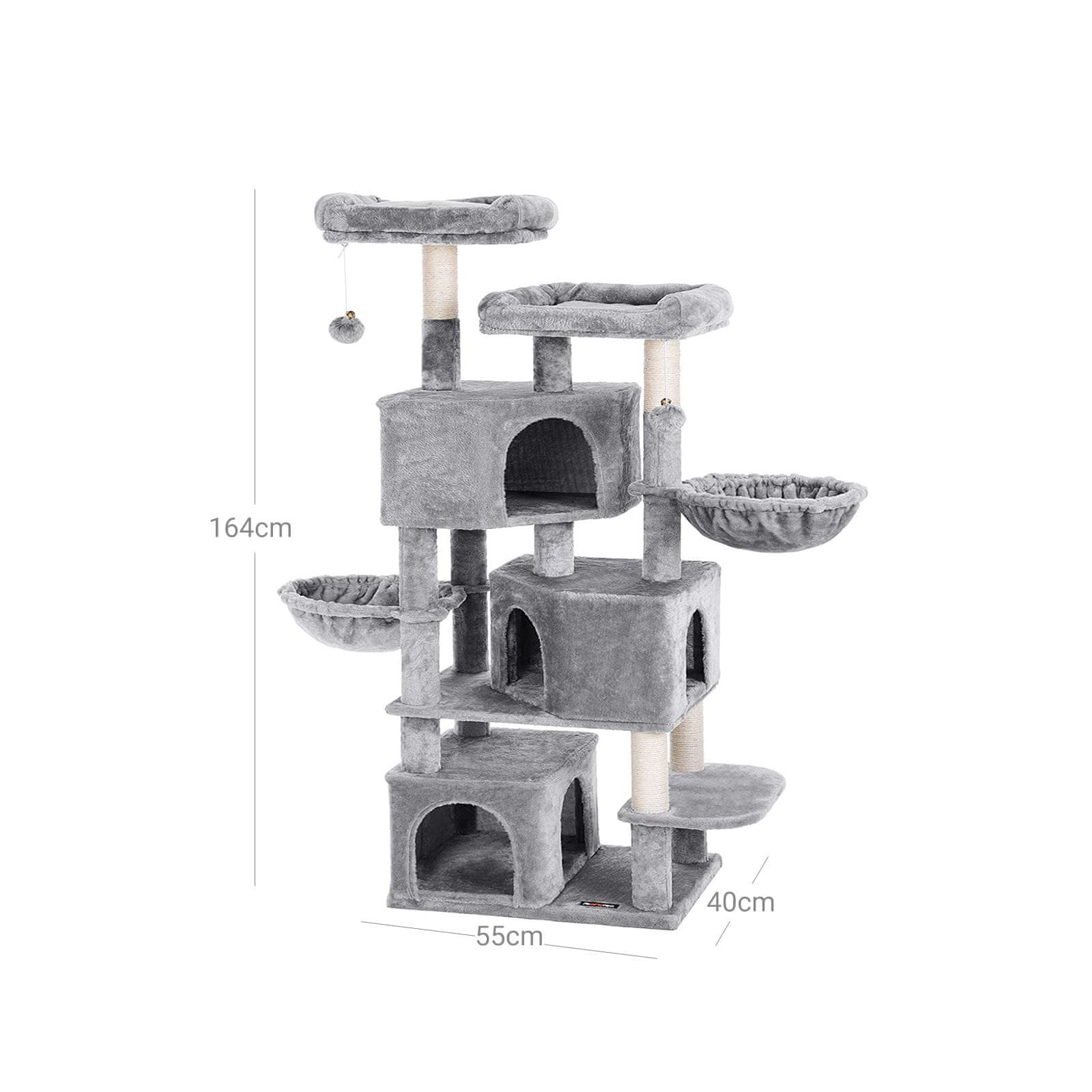 Songmics Stablo za mačke 3 mačje pećine 55x40x164 cm sivo