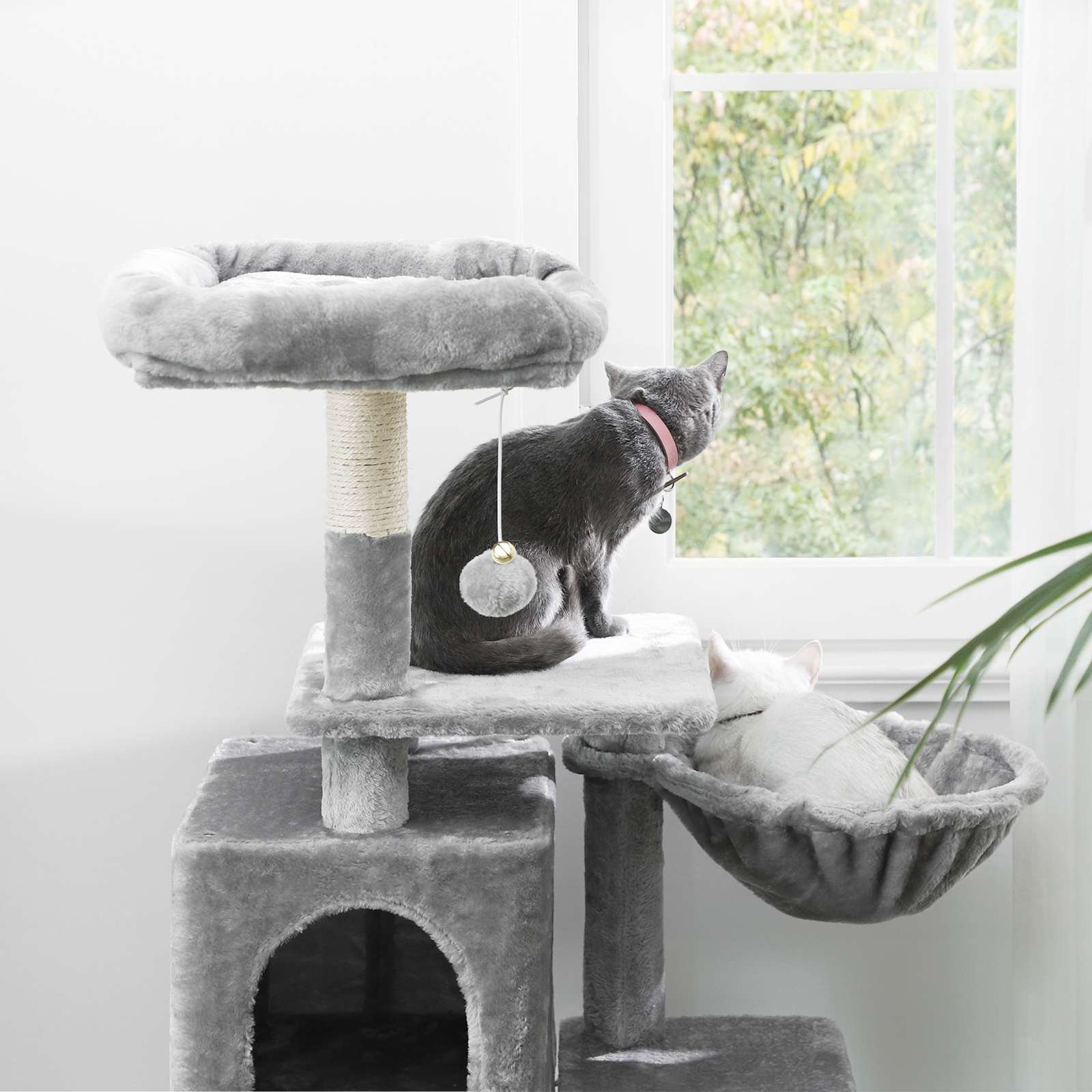 Ovaj mačji toranj dizajniran je kako bi vašim mačjim ljubimcima pružio svestran prostor za penjanje grebanje i odmor. Pogodan za mačke svih dobi sadrži više elemenata za penjanje prostranu platformu za promatranje udobnu špilju i udobnu viseću mrežu. Njegova čvrsta konstrukcija osigurava stabilnost i sigurnost za vaše ljubimce.