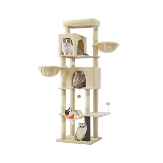 Songmics Višenamjenski mačji toranj s 2 špilje i 2 viseće mreže 59x48x190.7 cm Bež