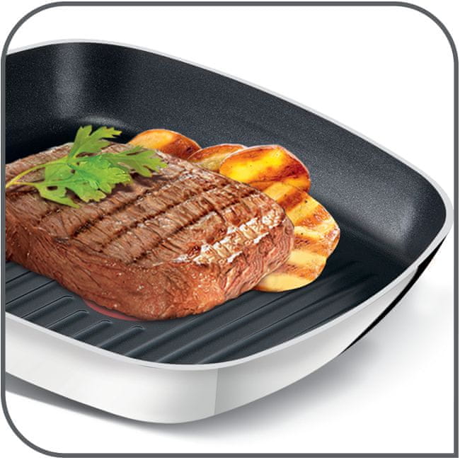 Grill tava predstavlja inovativno svakodnevno kuhanje. Tefal Daily Cook tava, 26 cm (G7314055) je sigurna, robusna i izdržljiva. Posuda je izrađena od nehrđajućeg čelika prvoklasne kvalitete sa sigurnom neljepljivom površinom Titan 2×. Potpuno induktivno.