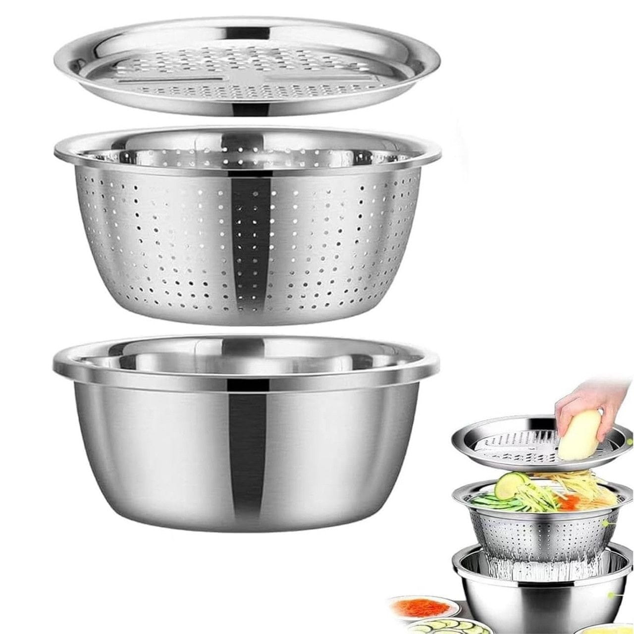 Netscroll 3‑dijelni kuhinjski set od nehrđajućeg čelika, kuhinjsko cjedilo, zdjela i rezač za pranje i pripremu voća, povrća i tjestenine, GraterBowl