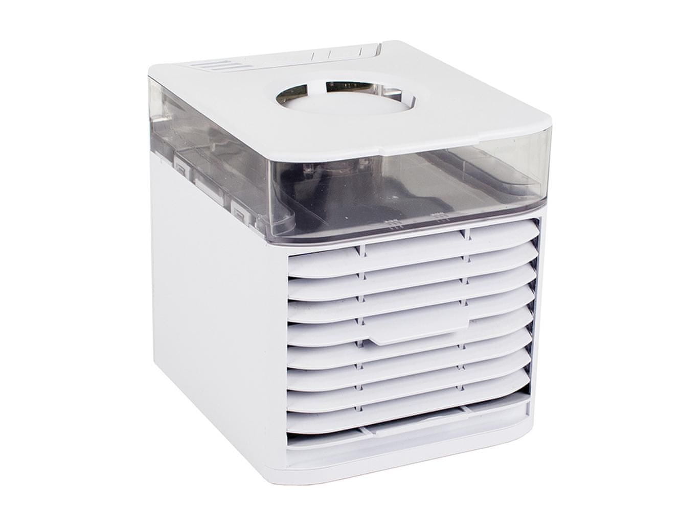 Mini klima uređaj je savršen za vruće dane kod kuće ili na poslu. Ovaj mali uređaj može znatno sniziti temperaturu u prostoriji. Zbog malih dimenzija možete ga postaviti na radni stol, ormarić ili stol. Klima uređaj je opremljen rasvjetom jarkih boja koja svijetli u promjenjivim bojama.Klima uređaj učinkovito hladi zrak u vrućim danima i čisti zrak od prašine i alergena.