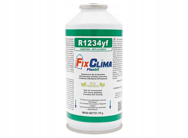 - Jedna limenka sadrži 170 grama rashladnog sredstva FixClima, što je ekvivalentno 453 grama prethodnog rashladnog sredstva R1234yf