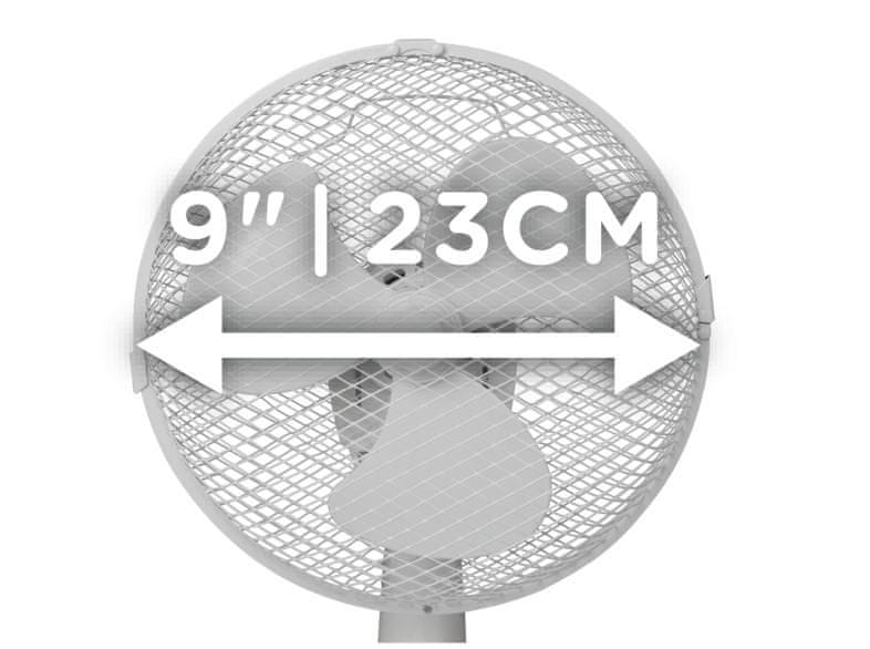 OK OTF 23223 W Bijeli stolni ventilator OK OTF 23223 W Bijeli stolni ventilator je praktičan i funkcionalan uređaj, idealan za korištenje u uredu, na stolu ili na polici. Značajke: Ima tri postavke brzine, tako da možete prilagoditi njegov rad svojim individualnim željama. Ventilator ima okretnu glavu koja vam omogućuje podešavanje smjera protoka zraka, osiguravajući još veću udobnost korištenja. Dizajn: Njegov moderan dizajn i bijela boja čine ga savršenim dodatkom modernom uređenju interijera. OK OTF 23223 W Bijeli stolni ventilator je neophodan komad opreme koji će pružiti ugodan osjećaj hlađenja u vrućim danima. Prednosti: – Snaga 30 W – Promjer 23 cm – Automatska oscilacija – 2 postavke brzine – Mehaničko podešavanje nagiba. Tehničke specifikacije: