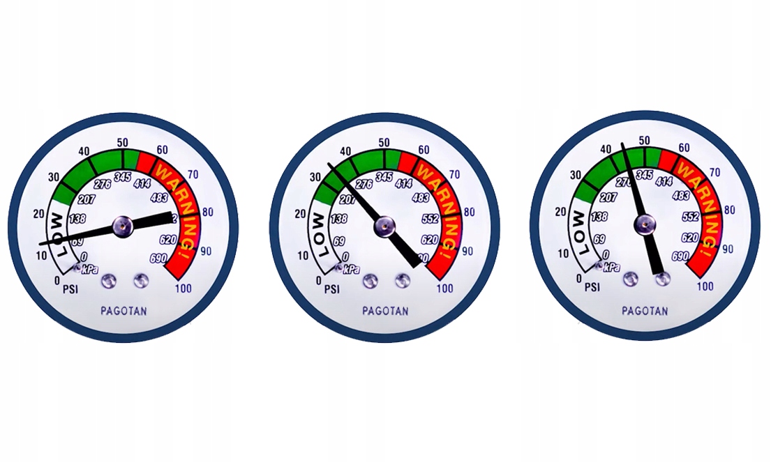 ⚠️ Boja CRVENA – iznad 55 PSI : tlak sustava previsok . Treba ga smanjiti na odgovarajuću razinu.