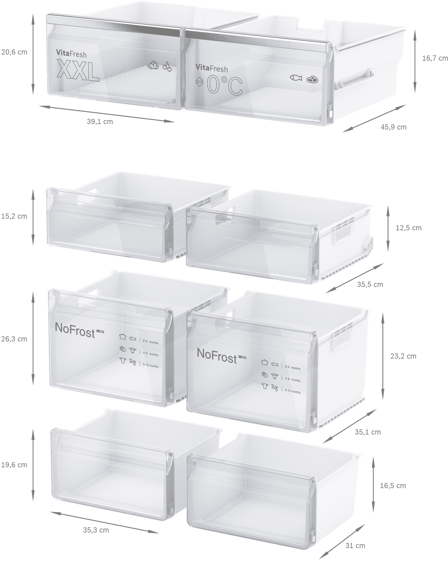 Posebno duboka ladica za smrznutu hranu za praktično slaganje kontejnera sa smrznutom hranom ili većom smrznutom hranom poput kolača ili pizza. Bilo da, trebate prirediti dječji rođendan ili zamrznuti svadbenu tortu – u ladici Big Box pronaći ćete dovoljno mjesta za veće smrznute namirnice.