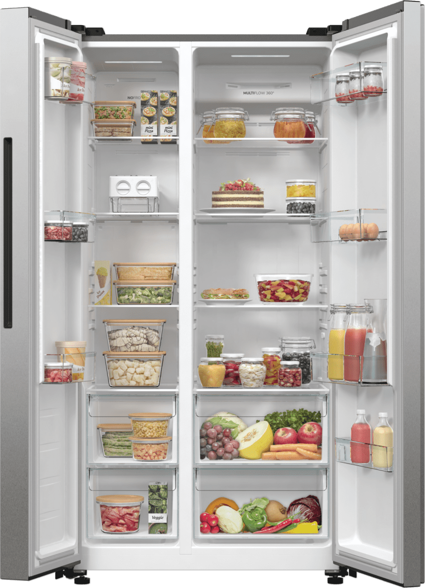 Američki hladnjak Gorenje NRR9185DAXL Side By Side s elektroničkim upravljanjem SensoTech i LED zaslonom pripada energetskom razredu D i prosječno godišnje troši 254 kWh energije. Može se pohvaliti elegantnim i modernim dizajnom te ukupnom zapreminom od 550 litara. Volumen zamrzivača je 192 litre, a volumen rashladnog dijela je 358 litara. U zamrzivaču možete zamrznuti 11 kg hrane u 24 sata. Inverterski kompresor osigurava snažan, tih i energetski učinkovit rad hladnjaka, a istovremeno osigurava dug vijek trajanja uređaja. LED unutarnja rasvjeta osigurava dobar pregled pohranjene hrane. Hladnjak ima sustav automatskog odmrzavanja hladnjaka i zamrzivača, funkciju brzog zamrzavanja FastFreeze i tehnologiju protiv leda NoFrost Plus, koja savršeno čuva svježinu, sočnost i aromu smrznutog. namirnice.