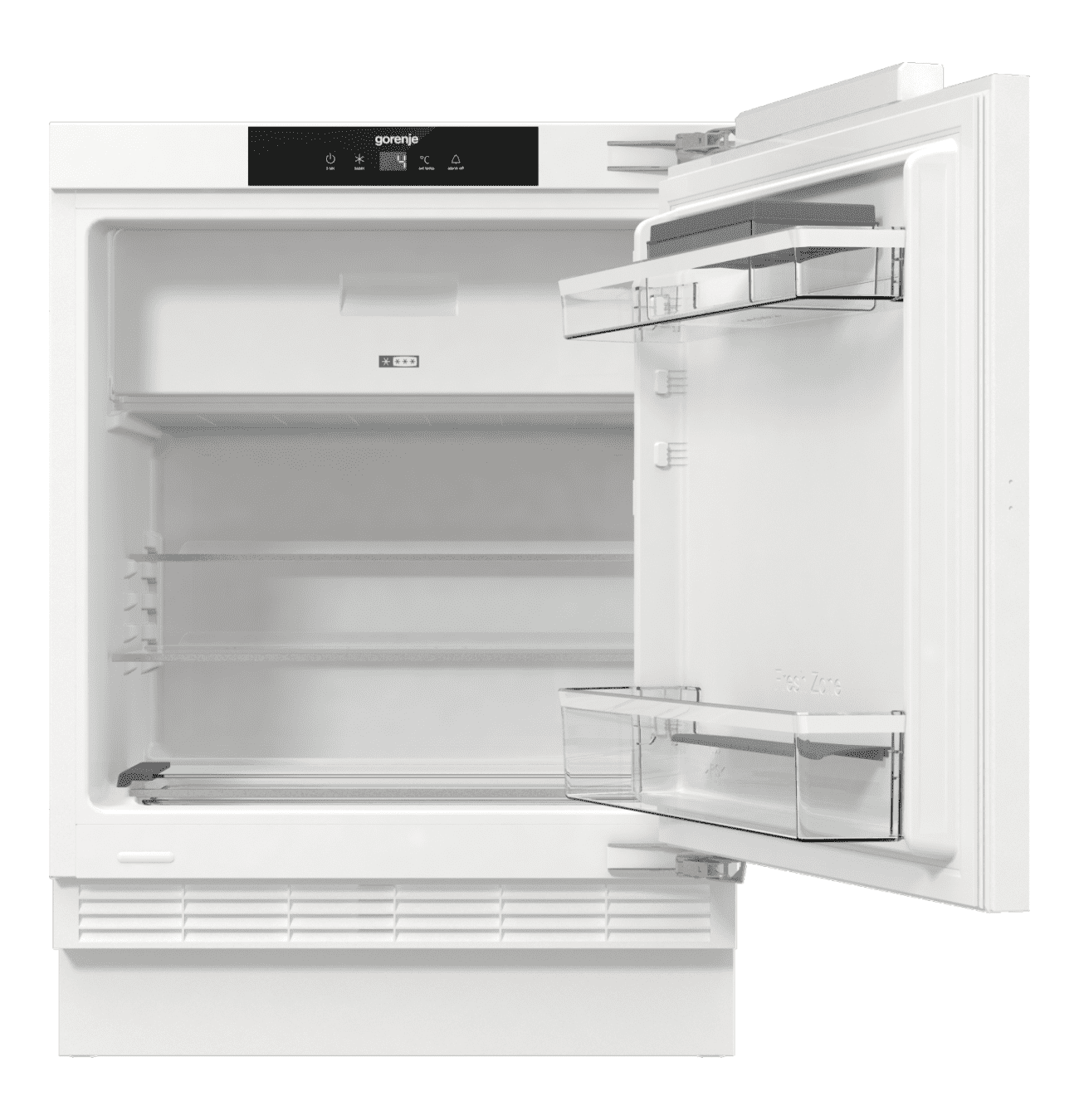 Vrata se mogu otvoriti do kuta od 115° i mogu pohraniti čak i teže predmete zahvaljujući masivnim šarkama. Osim toga, umetanje ili uzimanje hrane također je olakšano. Samozatvarajuća šarka će automatski zatvoriti vrata ako ostanu zatvorena.