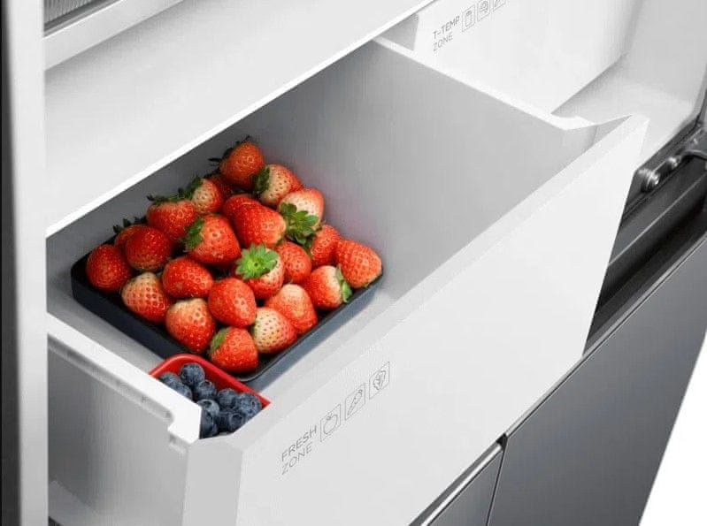 Funkcija T-temp omogućuje vam postavljanje jedne od 3 temperature jednim dodirom na elektroničkoj ploči. Na taj način možete osigurati da očuvate svježinu i teksture različitih namirnica stvaranjem idealnog okruženja. Također zadovoljava zahtjeve onih koji trebaju pohranjivati različite vrste hrane u velikim količinama.