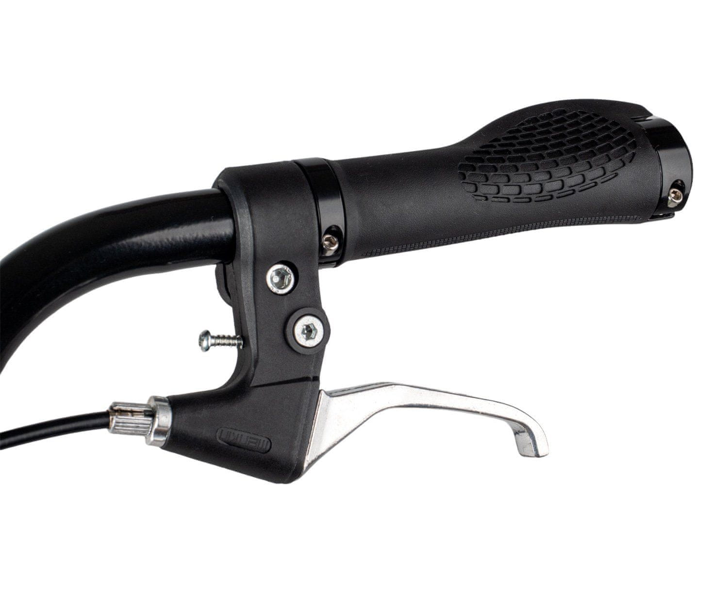 Romobil je bijele boje. Kotači su na napuhavanje, veličine 20", 16" Okvir romobila izrađen je od visokokvalitetnog laganog čelika i nije sklopiv. Upravljač romobila je čvrst, preporučujemo visinu do 170 cm i ima gumene ručke i kutove na upravljaču. Romobil ima prednje i stražnje V-kočnice. Tehničke značajke: