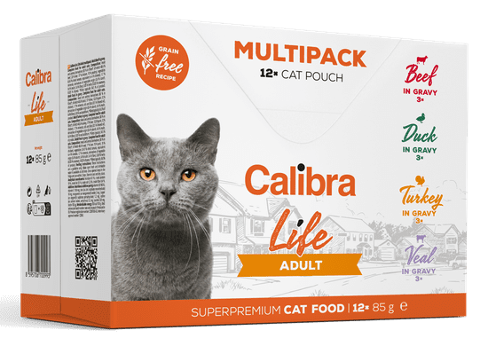 Calibra Life hrana za mačke, s govedinom, patkom, puretinom i teletinom u umaku, 12 × 85 g