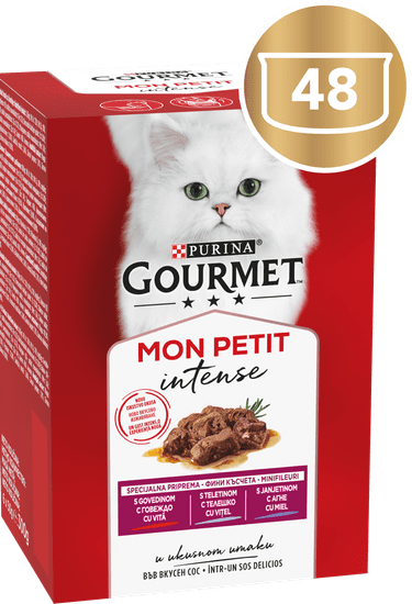 Gourmet Mon Petit mokra hrana za mačke, govedina, teletina i janjetina, 8 x (6 x 50 g)