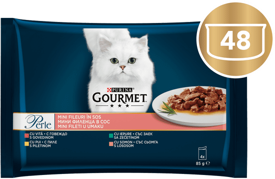 Gourmet Perle mini fileti u umaku, govedina, piletina, zec i losos, 12 x (4 x 85 g)